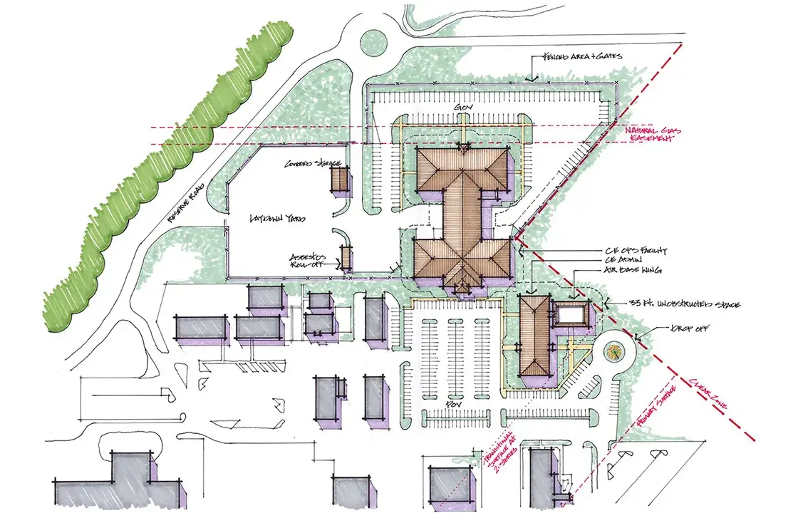 Blair Remy was tasked with providing Planning Charrette Report documents to determine the impact that the planned relocation of Interstate-40 will have on facilities and land owned by Tinker AFB, and to develop a plan to relocate assets and mission functions that will be displaced. This effort also included the development of two conceptual designs for a future consolidated facility to house all of Tinker’s Civil Engineering staff and commander.